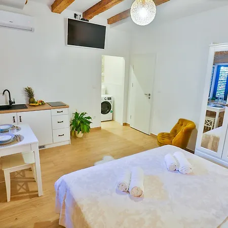 У цьому помешканні є повністю обладнана кухня з холодильником, тостером і скляним посудом, а також кавоваркою. Апартаменти розташовані майже за 10 хвилин ходьби від найближчої автобусної зупинки HNK - Izlaz.